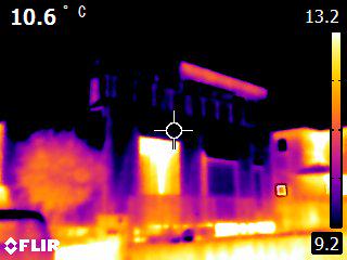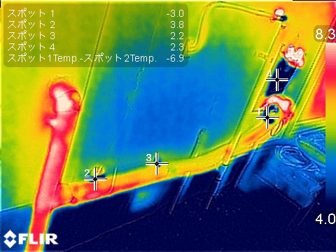 上の画像が現状で、すでに各部分の温度の表示もありますが、サーモカメラの色付きの画像はこちらです↓。