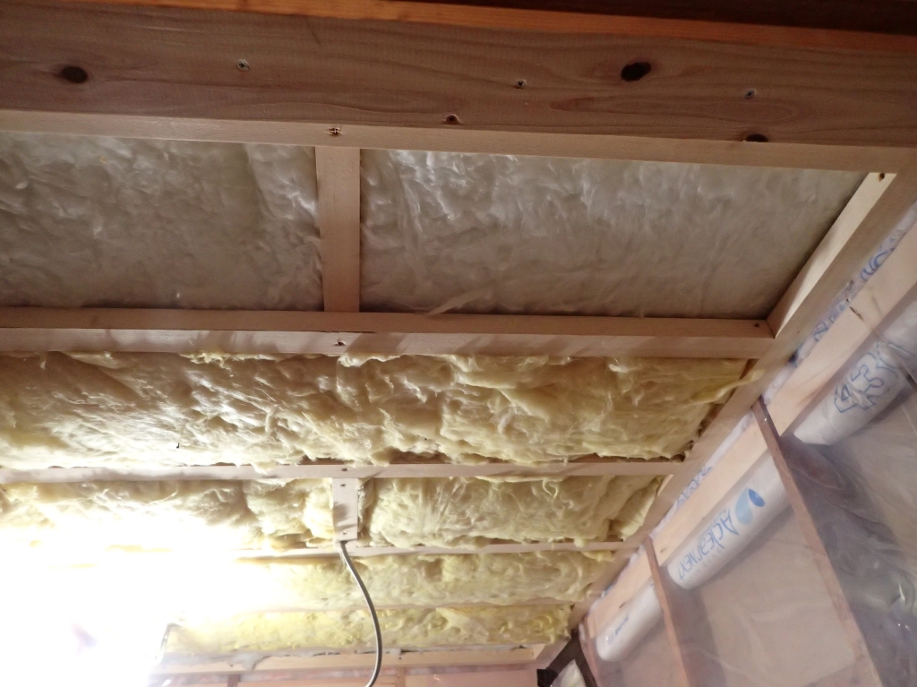 母屋と使っている材料が違いますし、グラスウール(GW)10k50mmが外壁側に入っていました。