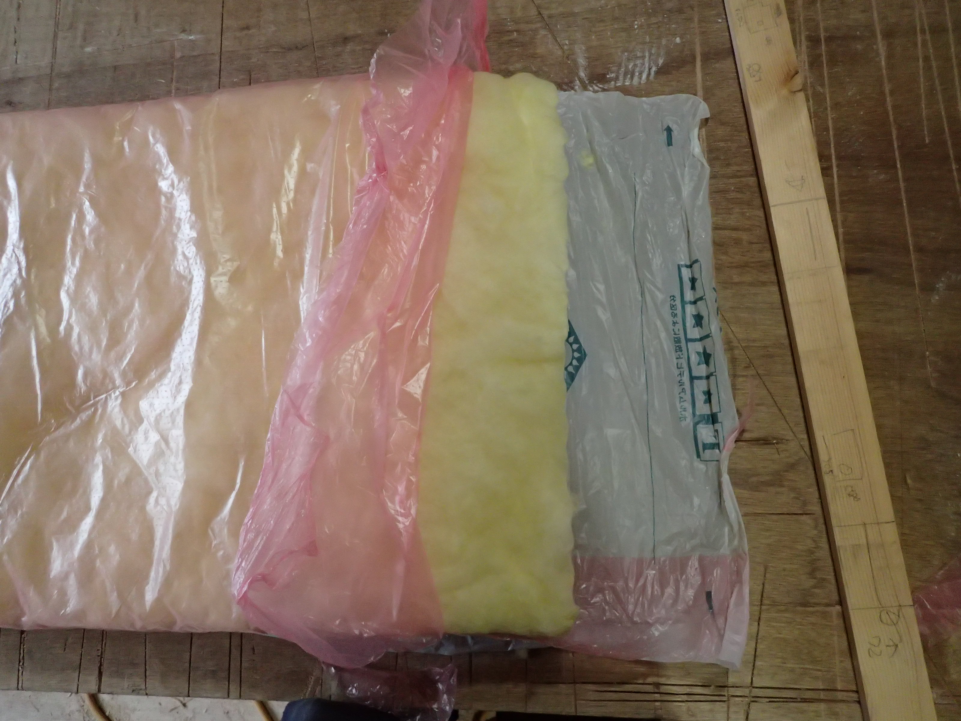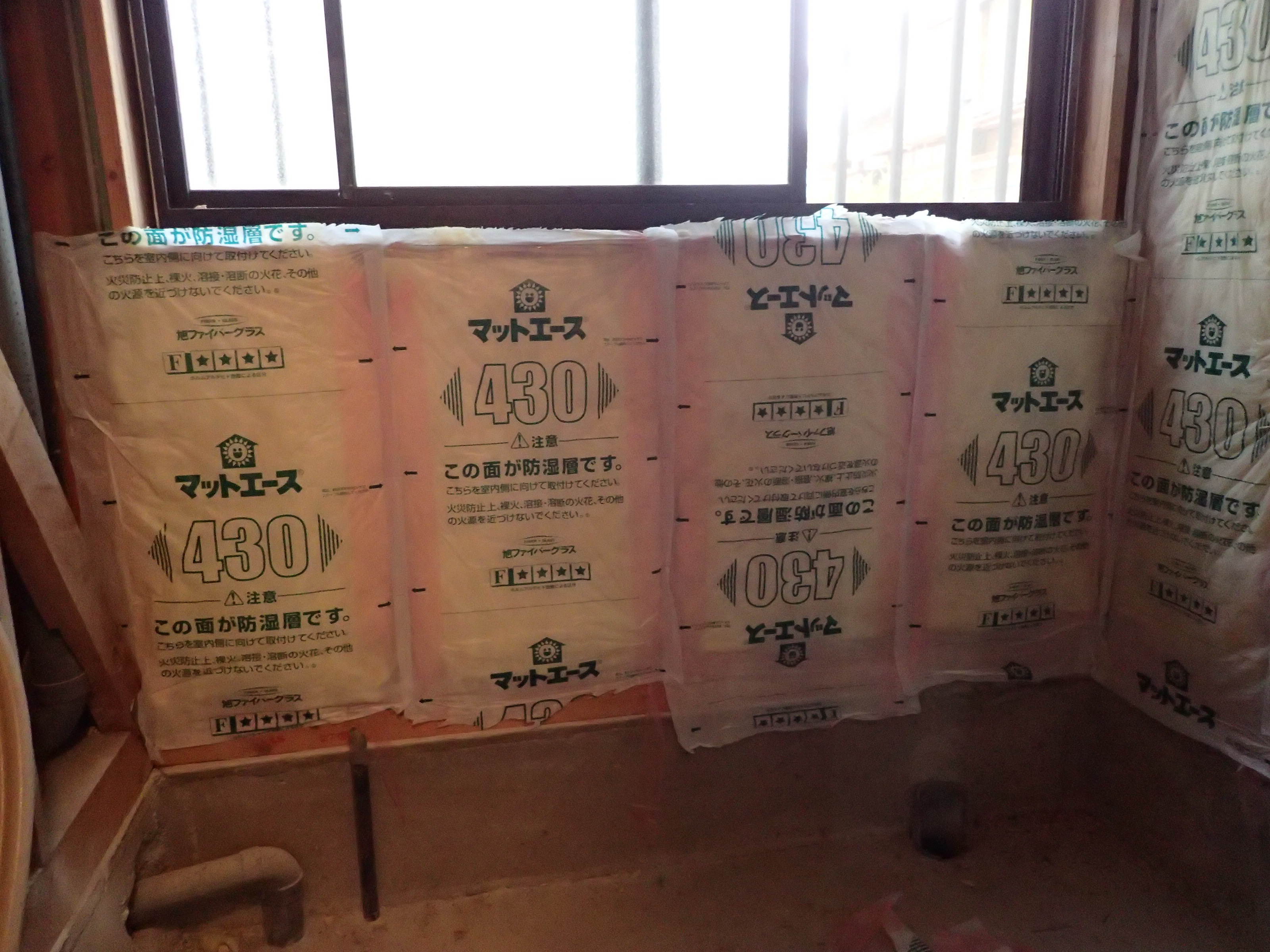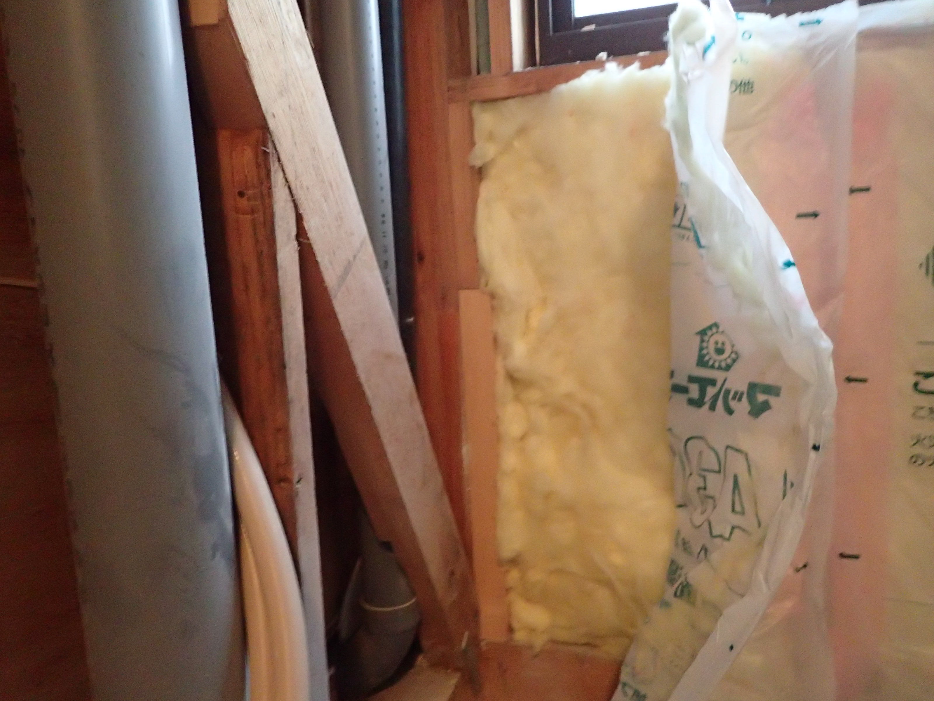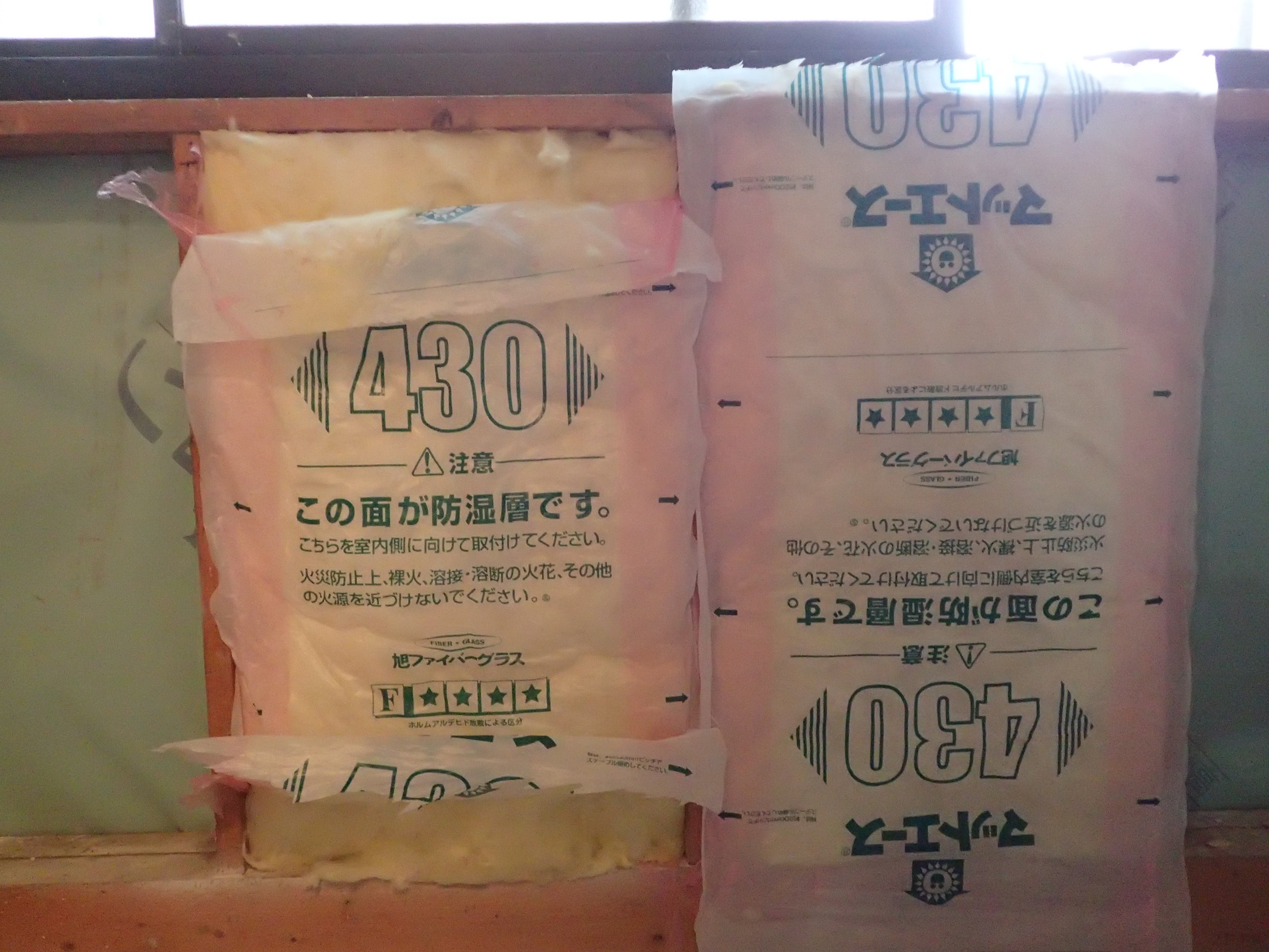 弊社で行っている断熱施工は、裸のGWを充填してから室内側に防湿フィルムを別に施工して壁内への水蒸気の侵入を防ぐことに気をつけています。